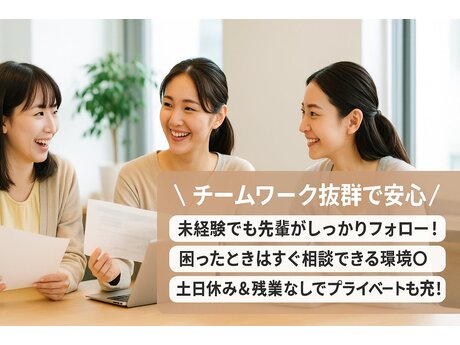 未経験やブランクがあっても大丈夫!事務デビューを応援する職場です。専門知識は不要で、PCの基本操作ができればOK!残業なしでプライベートも充実、年間休日120日&完全週休2日制。ネイルや髪色自由で自分らしく働けます!