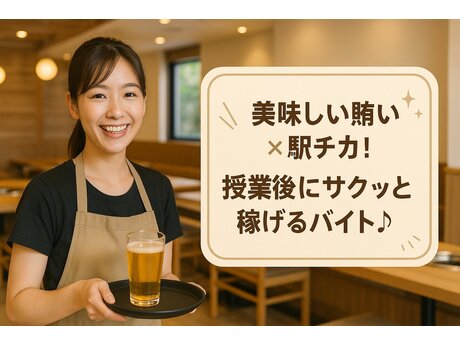 平日だけ・週末だけ・1日3時間の短時間など希望に合わせて働ける飲食バイトです。家事の合間や授業後でも続けやすく、扶養内OKで無理なく勤務できます。駅チカで通勤ラクラク、まかない付きで食費も節約!飲食未経験でも丁寧にサポートするので安心してスタートできます。電話で10分面接も実施中で、まずは気軽に相談できます。