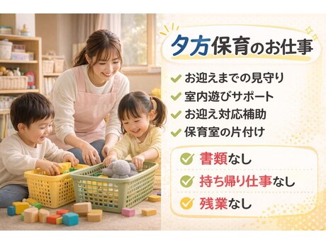 夕方保育のサポート業務を担当していただきます。
