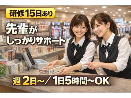 【週2日〜OK/1日5時間〜】パチンコ店ホール・カウンター|早番1200円・遅番1300円+土日祝100円UP