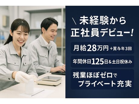 給与 | 月給28万円~/昇給あり+賞与年3回/家族・住宅手当あり | シフト | 週5日 1日8時間以上 |