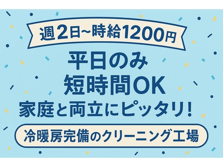 クリーニング工場スタッフ/平日のみ・時短OK・時給1200円!