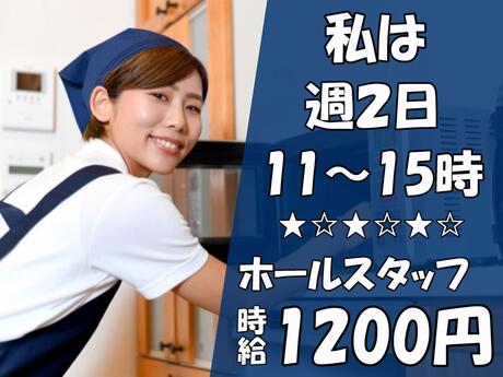 「週末だけ働きたい!」そんなご要望にお応えします!土日祝勤務できる方なら時給1200円!もちろん平日勤務していただいても同じ時給なので断然お得!ランチタイムだけの短時間だから、家事や本業、授業にも疲れが残りません!扶養内でお小遣いを稼ぎたい方にピッタリのお仕事です!