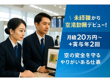 未経験から憧れの空港勤務デビュー!月給20万円~+賞与年2回で安定収入◎深夜・資格・家族手当など手当充実♪年収300万円以上も可能!資格取得支援や昇給制度もあり、頑張りはしっかり評価★語学や接客経験を活かして長く働ける環境です!