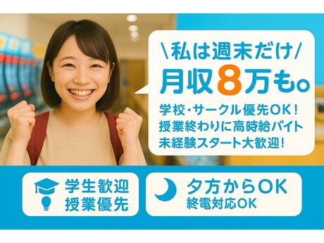 授業やサークル、家事や子育てで忙しい…でもしっかり稼ぎたい!それなら週末だけ遅番勤務や平日だけ早番勤務はいかがですか?時給1500円で1日5時間以上だから、少ない日数でも安定収入が可能!効率よく扶養内勤務したい方にも、ガッツリ稼ぎたいフリーターさんにもピッタリです。未経験スタートでも丁寧な研修があるから安心!自分のライフスタイルに合わせて働ける環境で、お気軽にご応募ください!
