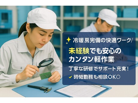 「安定して稼ぎたい!」「家庭の予定も合わせたい!」そんな希望を両立できるお仕事です。冷暖房完備の快適な職場で、電子部品の検査をするシンプル作業だから未経験でも安心スタート!基本は週5日のフルタイム勤務で月収23万円以上も可能、さらに事前の休み希望や前後1時間程度の時短勤務も相談OK!主婦(夫)さん・フリーターさん・ミドル層まで幅広く活躍中です。