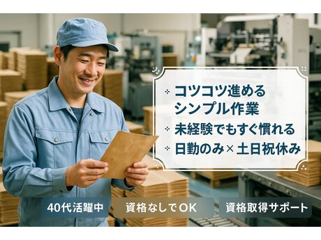 未経験でも時給1400円スタートで資格がなくても安心して始められる工場ワークです。入社後にフォークリフト資格を会社サポートで取得でき、時給1600円へ収入UPも可能。土日祝休み&長期連休ありで家族との時間も確保しやすく、40代の転職や安定収入を求める方にも人気の職場です。安定企業でコツコツ長く続けたい方に向いています。