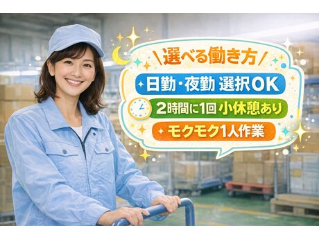 とにかく稼ぎたい方必見。高時給1,300円スタート、深夜・残業時は最大1,950円。作業はフィルムの包装や梱包が中心で、基本はモクモク1人作業。人間関係に悩まず仕事に集中できます。2交替・日勤固定・夜勤固定から選択可能で、ライフスタイルに合わせて働けるのも魅力。日払い・週払い対応で収入面の不安も最小限です。