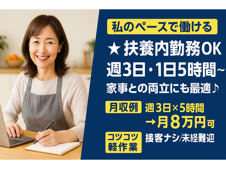 \平日だけ×1300円で月8万円/週3日×1日5時間~扶養内OK◎未経験歓迎!