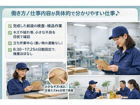 日勤固定・未経験可|紙袋の検査/検品スタッフ(立ち作業・時給1300円)