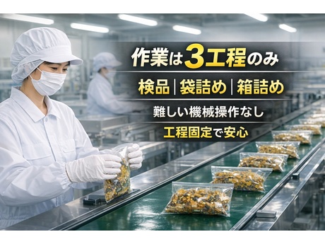 夕方固定シフト|食品工場での検品・袋詰め軽作業|週3日~時給1300円