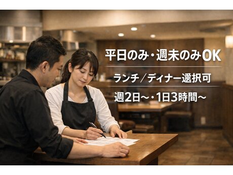 飲食店ホールスタッフ/週2日~・1日3時間~/扶養内OK/未経験可