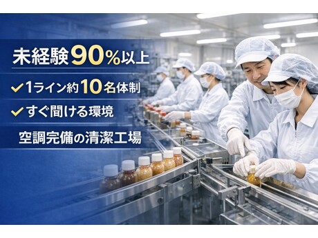 液体調味料の検品や箱詰めを担当する軽作業です。1ライン約10名体制で作業を行い、分からない点はすぐに確認できる環境です。勤務日は年間カレンダーで事前に確定しているため予定管理がしやすく、未経験からでも安定した収入を得ながら長期勤務が可能です。