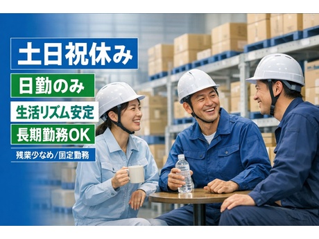 日勤固定8:30~17:30・土日祝休みで生活リズムを維持しながら、時給1,400円で月収24万円前後を安定確保。フォークリフト経験を活かして無理なく長期勤務ができる倉庫作業です。