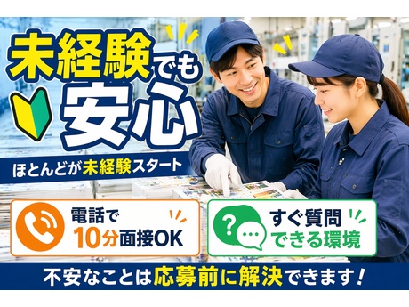 印刷工場の軽作業スタッフ(未経験可/時給1450円/土日休み/月収28万円可/週5フルタイム)