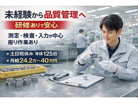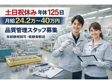 品質管理スタッフ(部品検査・測定・改善対応)土日祝休み/年休125日/月給24.2万~40万円